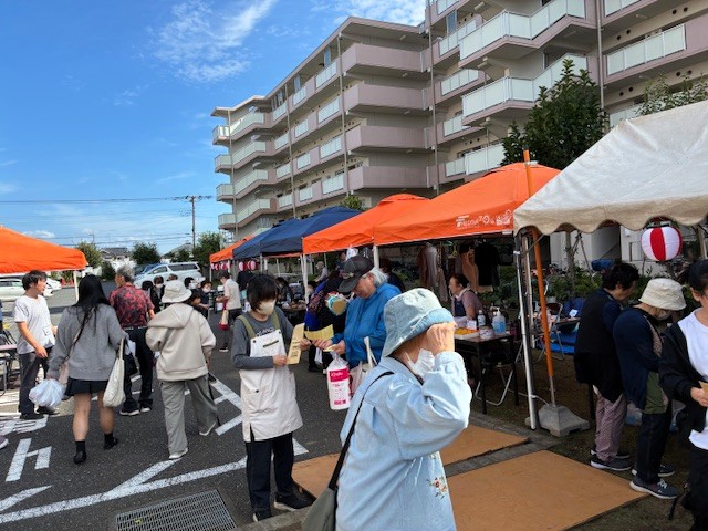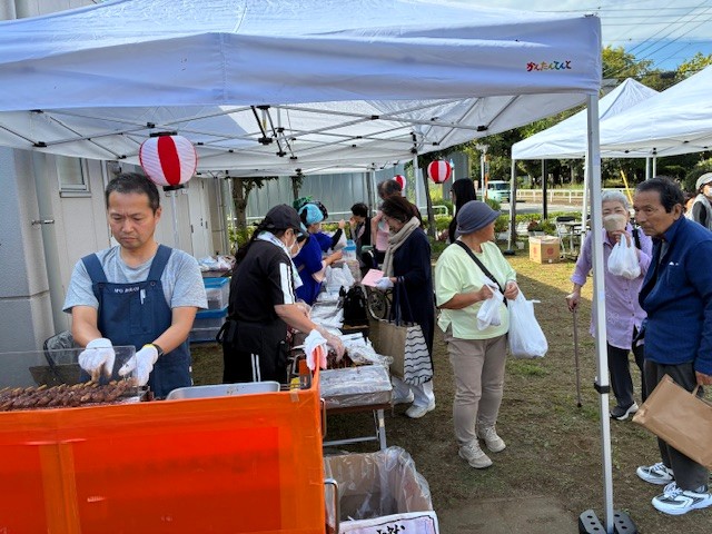団地自治会祭りに参加 2025年11月3日 Filed under: イベント各種 sakura-st 令和7年10月18日(土)団地自治会祭りに参加 10月18日(土)村山団地自治会の秋祭りに参加をいたしました。当日は秋晴れで、絶好のお祭り日和となりました。かたくりでは、布ぞうりなど自主製品と、やきそば・やきとりをはんばいしました。特にやきとりは好評で、300本が早々に完売となりました。かたくりの斉藤伸枝さんが、さくらスマイルで太鼓の演奏を披露してくれました。image5