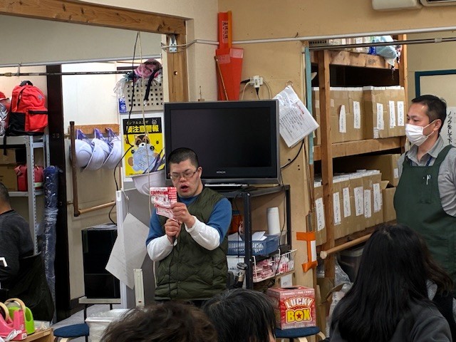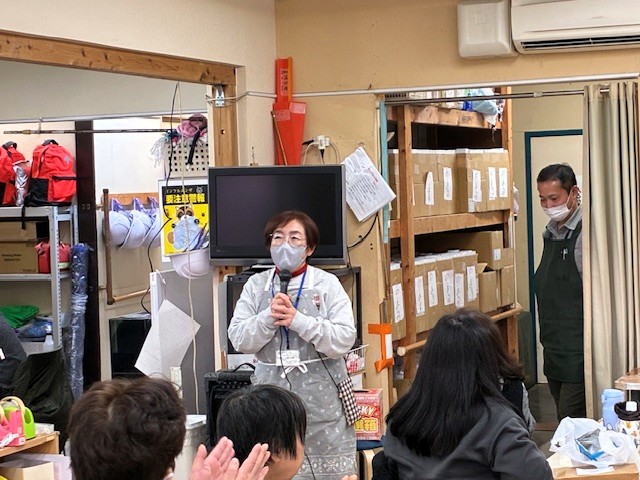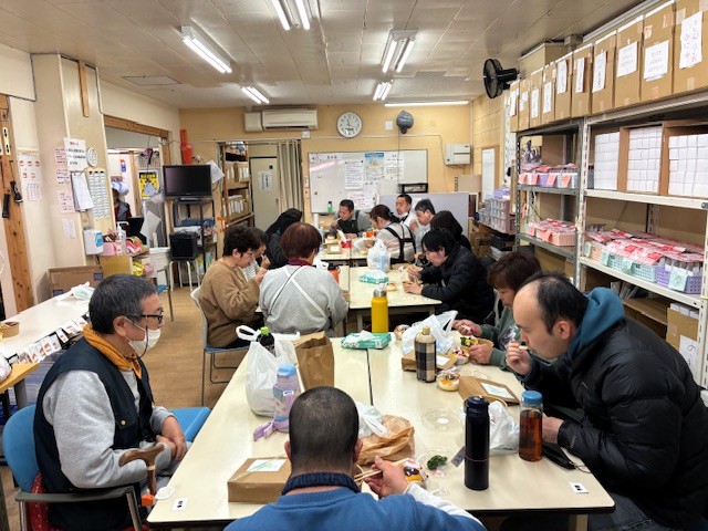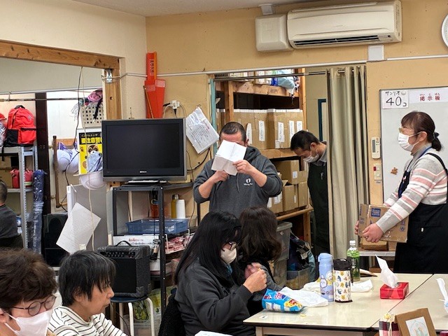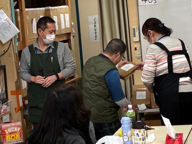 令和7年「1年を納める会」を開催 2026年1月7日 Filed under: イベント各種 sakura-st 令和7年12月26日(金)「1年を納める会」を開催 令和7年12月26日(金) 年末最後の通所日に「1年を納める会」を開催いたしました。 木住野職員の進行で始まりました。はじめは、小川理事長の挨拶からはじまり、ご利用者に対し1年の労をねぎらいました。次に、令和7年の正月に、ご利用者みんなで1年間の目標を紙に書いていただきました。 それを見ながら1年間の振返りを一言ずつ話していただきました。みなさんの振返り方もそれぞれに個性的で、小川伸二さんは 「来年も大好きな箱作業を頑張ります」と抱負を語りました。みなさんそれぞれの「振返り」を行なえました。ご利用者のあとは、職員さんも「1年を振返り」お話をしていただきました。今年の10月より入職された大良さんも、お話をしていただきました。全員お話をして頂いた後には、みなさん景品をいただきました。本日の昼食は「あいちゃんの台所さん」にお願いしたお弁当とプリンアラモードとなりました。みんな一緒に美味しくいただきました。昼食のあとは、恒例の「じゃんけん大会」のはじまりです。勝った方には豪華景品が贈られました年末の「1年を納める会は、山本職員の挨拶で終了いたしました。