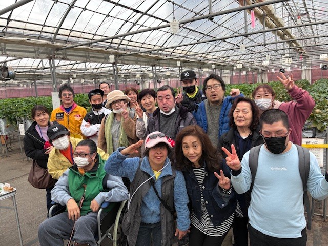 野外研修いちご狩り 2026年3月10日 Filed under: 日々のできごと sakura-st 3月6日(金)野外研修いちご狩り 3月6日(金)東村山市恩多町にある、東村山いちご村(久野農園)さんに、ご利用者・職員含めて27人で「いちご狩り)に行ってきました。いちごの種類は、べにほっぺとあきひめです。食べ放題の時間は30分ですが、短いようで、なかなかのんびりできました。みなさん、紅ほっぺに夢中です。みなさん、紅ほっぺに夢中です。みなさん、紅ほっぺに夢中です。食べ放題で、最高記録は、72個食べた方がおりました。いちご狩りの後は、瑞穂のジョイフル本田に移動をして、フードコーナーにて、昼食をとりました。いちご狩りの後は、瑞穂のジョイフル本田に移動をして、フードコーナーにて、昼食をとりました。